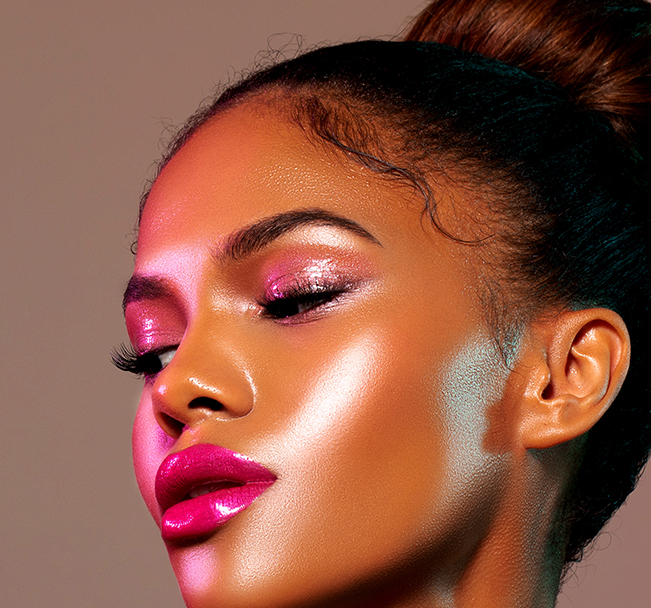 Long-lasting foundations, lipsticks, and eye palettes for diverse skin tones.